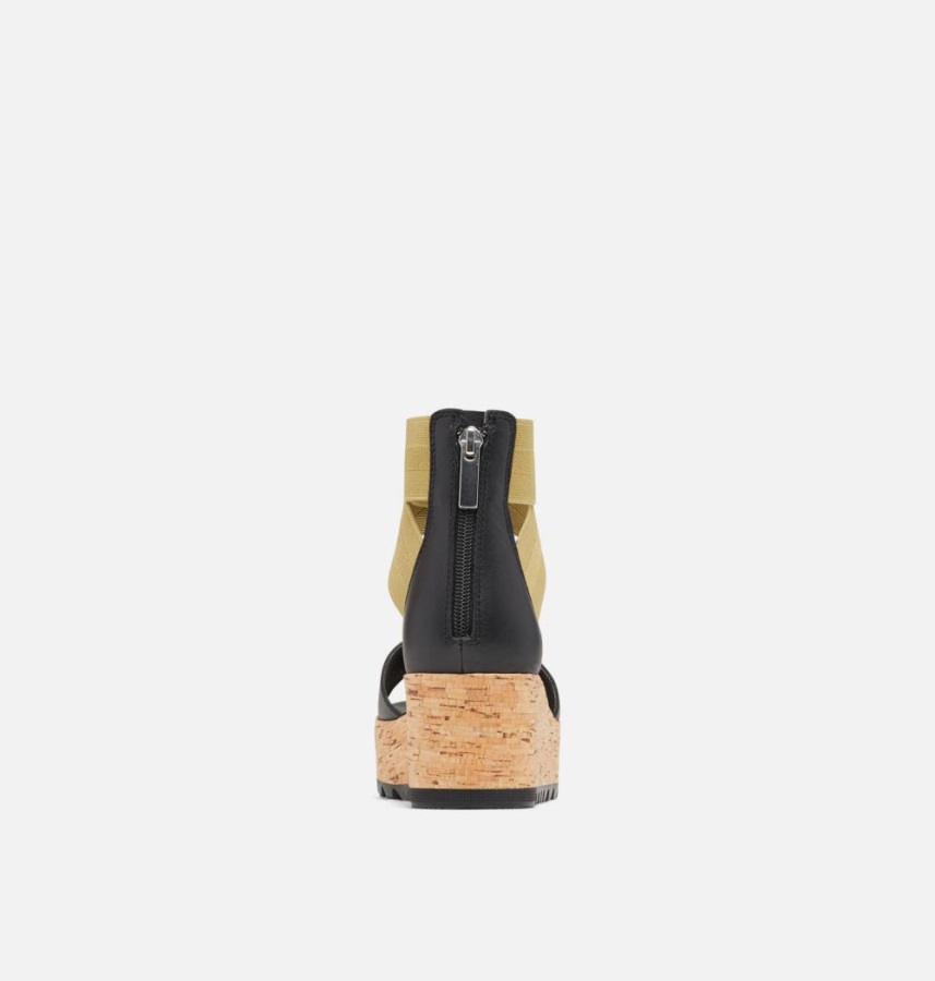 Sorel Polska Damskie Cameron Sandały Na Koturnie Z Paskiem Na Kostce Czarno-oliwkowy Odcień